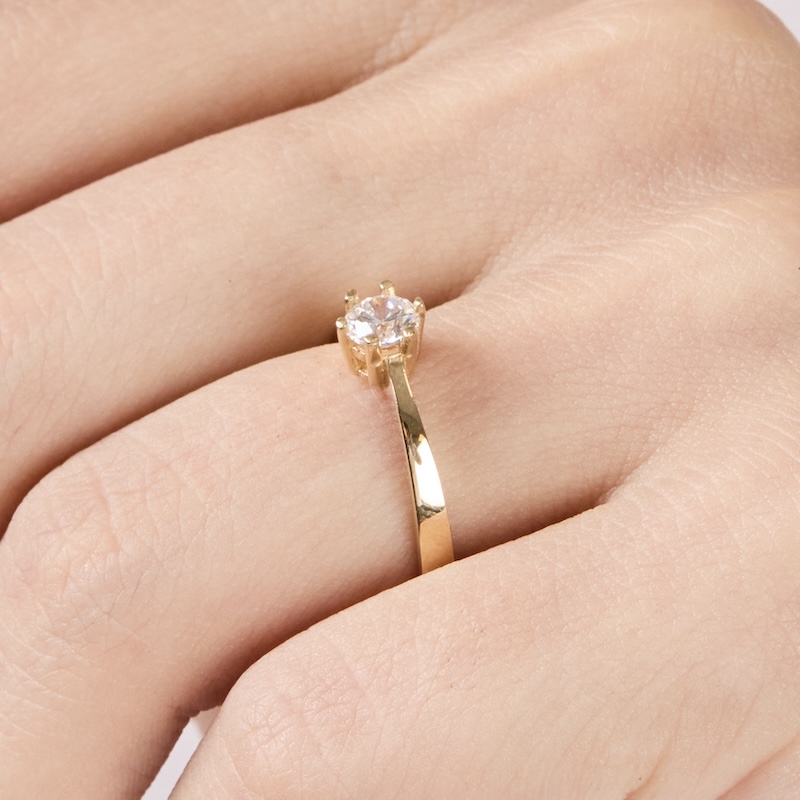 Anillo de Compromiso modelo AC38 de Oro Amarillo 18K con Cristal corte Brillante. Si deseas más información escríbenos y recibe Asesoría Personalizada vía Whatsapp al: (+51) 982295108