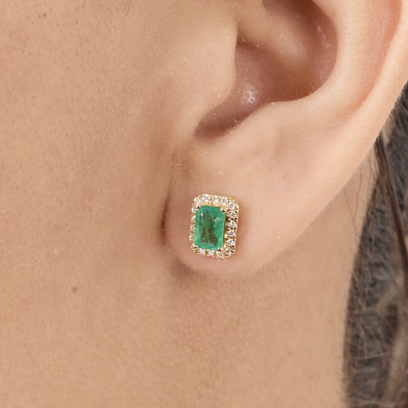 Aretes Esmeralda Octogonal y Diamantes Naturales